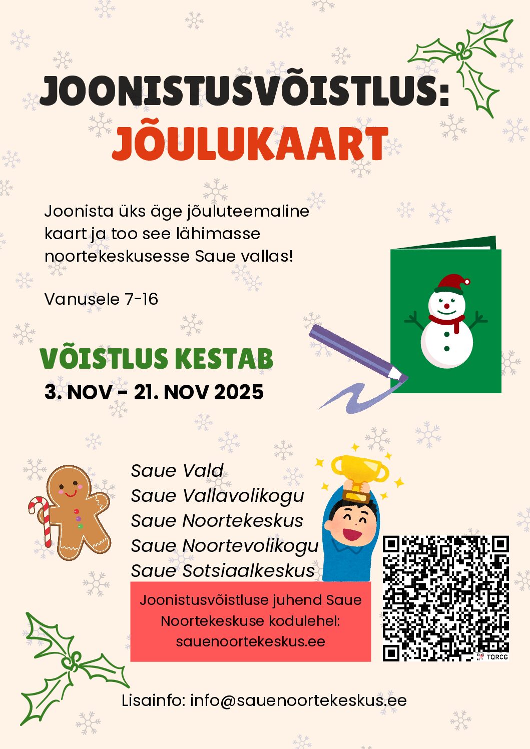 Sinu joonistusest võib saada järgmine esinduskaart! Ootame kõiki 7-16 aasta vanuses noori joonistama üks meeleolukas jõulukaart! Võistlusest osavõtt on lihtne - joonista kaart, mis oleks…