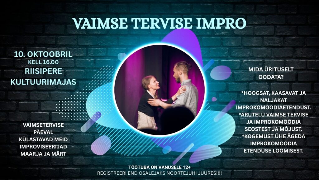 Oktoober on aeg, mil pöörame rohkem rõhku vaimsele tervisele ja selle heaolule! Turba Noortetoa eestvedamisel toimus 10. oktoobril Riisipere Kultuurimajas Vaimse Tervise Impro. Improviseerijad Maarja…