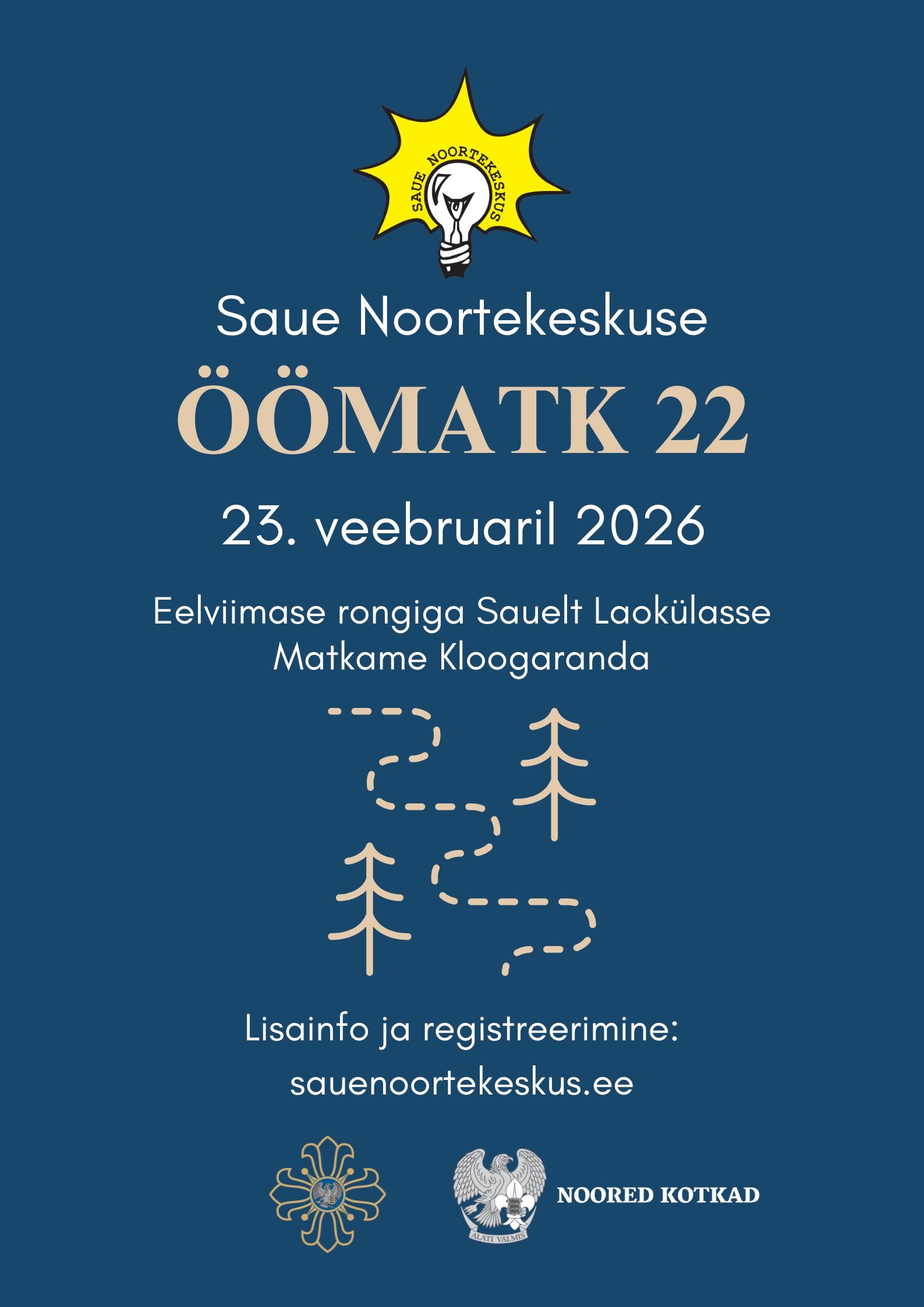 Matk algab 23. veebruari õhtul ja lõppeb 24. veebruari öösel Kloogaranna parklas. Matka pikkus ~ 13 km, poole peal pakutakse suppi ja teed.
