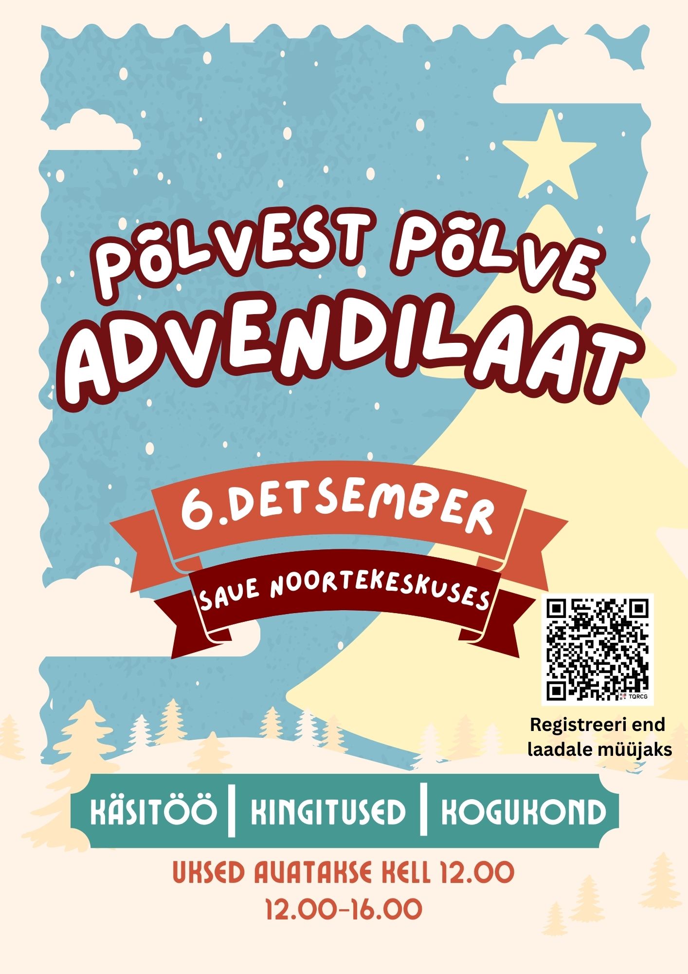 Ootame Sind Saue Noortekeskusesse advendilaadale oma loomingut müüma. Põlvest põlve advendilaat toimub esmakordselt 6. detsembril, Saue noortekeskuses!
